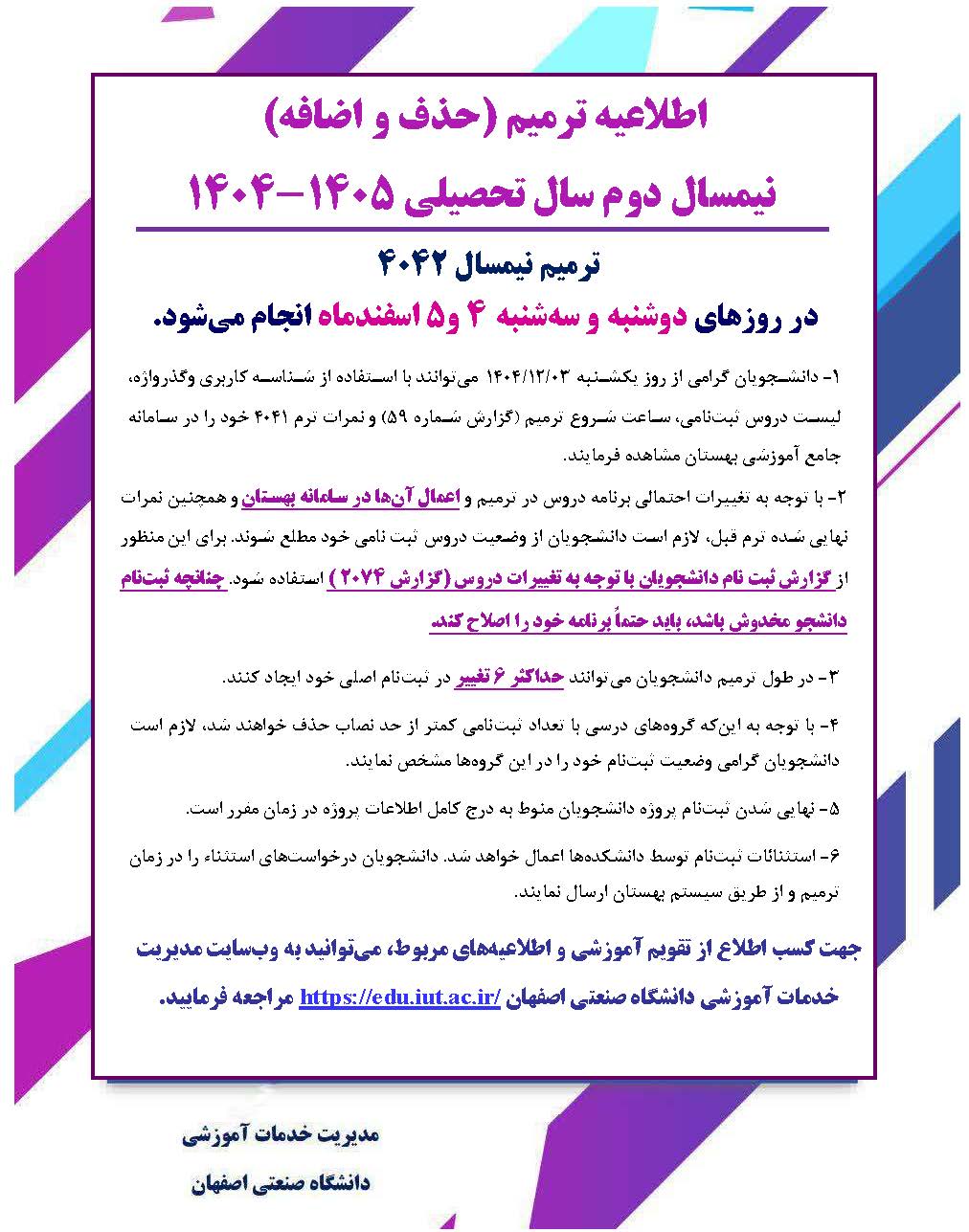 اطلاعيه ترميم نيمسال4042