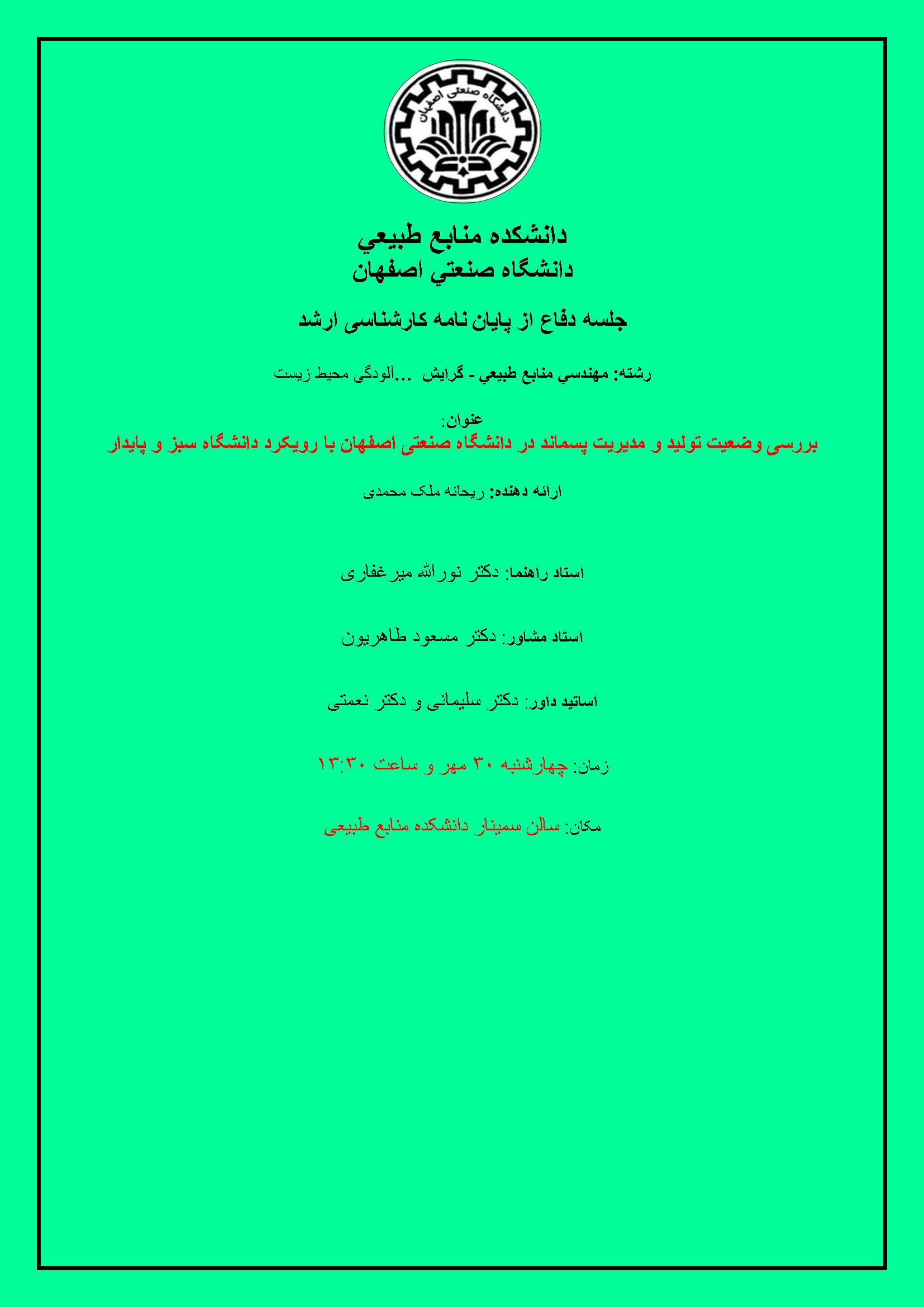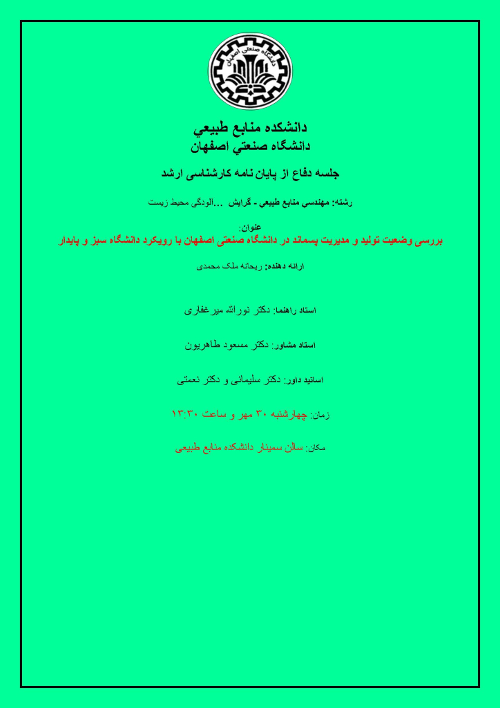 بررسی وضعيت توليد و مديريت پسماند در دانشگاه صنعتی اصفهان با رويکرد دانشگاه سبز و پايدار