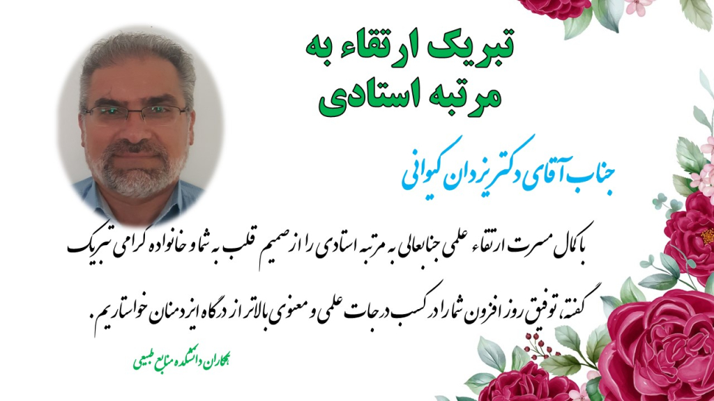 تبریک ارتقای رتبه علمی جناب آقای دکتر یزدان کیوانی به استادی