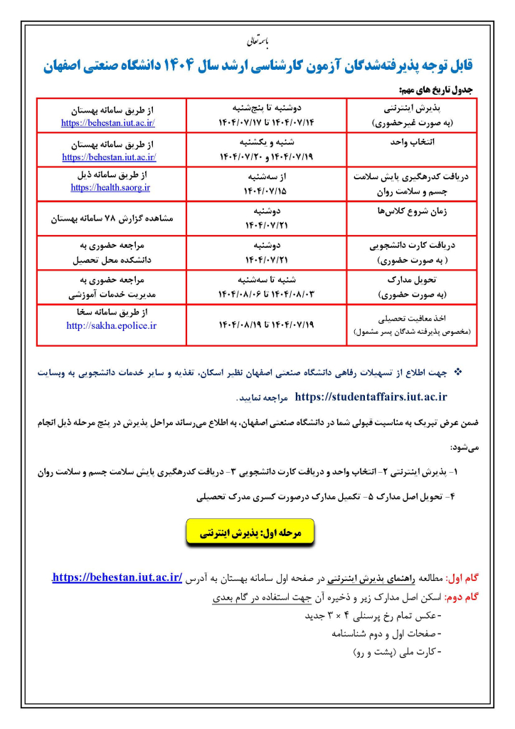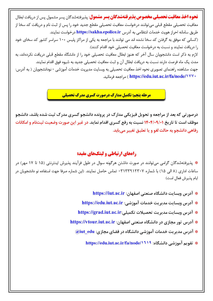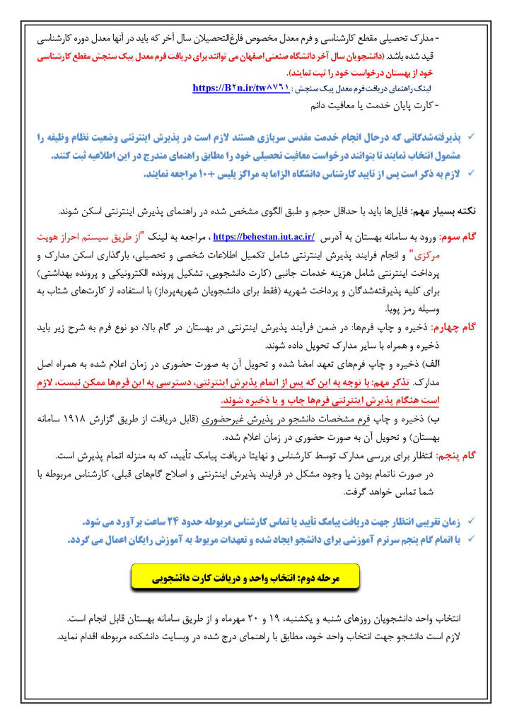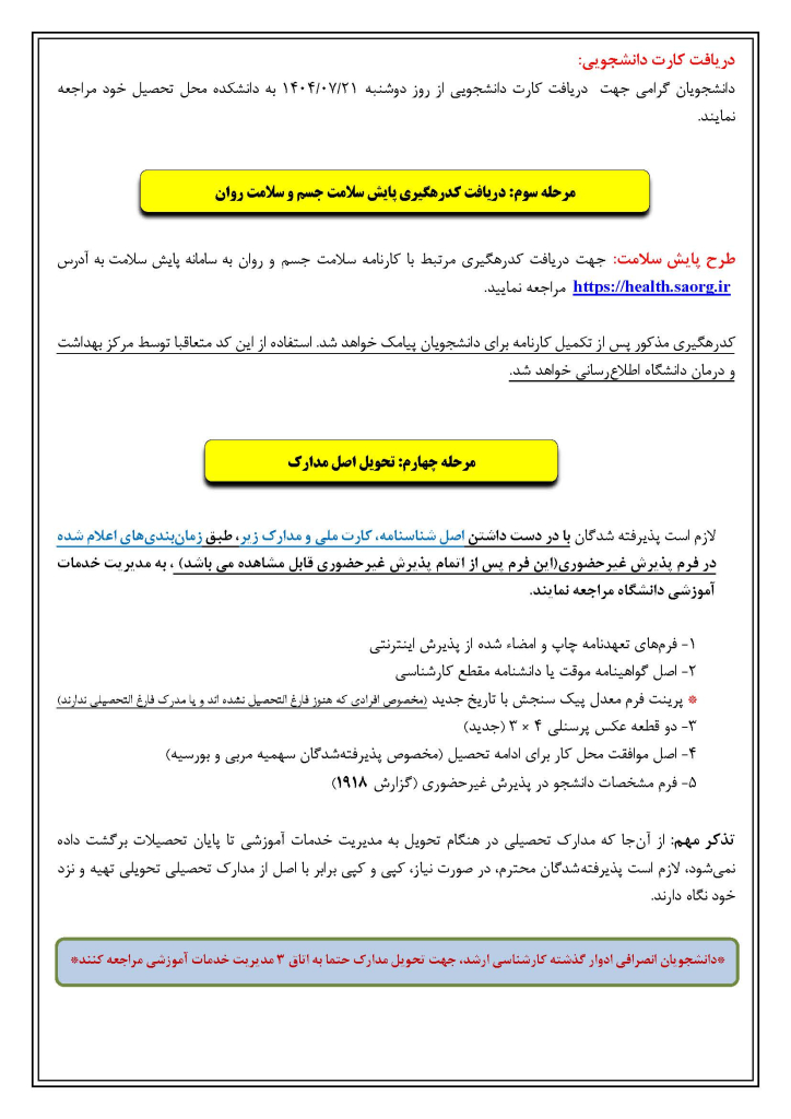 راهنمای انتخاب واحد ترم 4041 نودانشجويان كارشناسي ارشد 1404