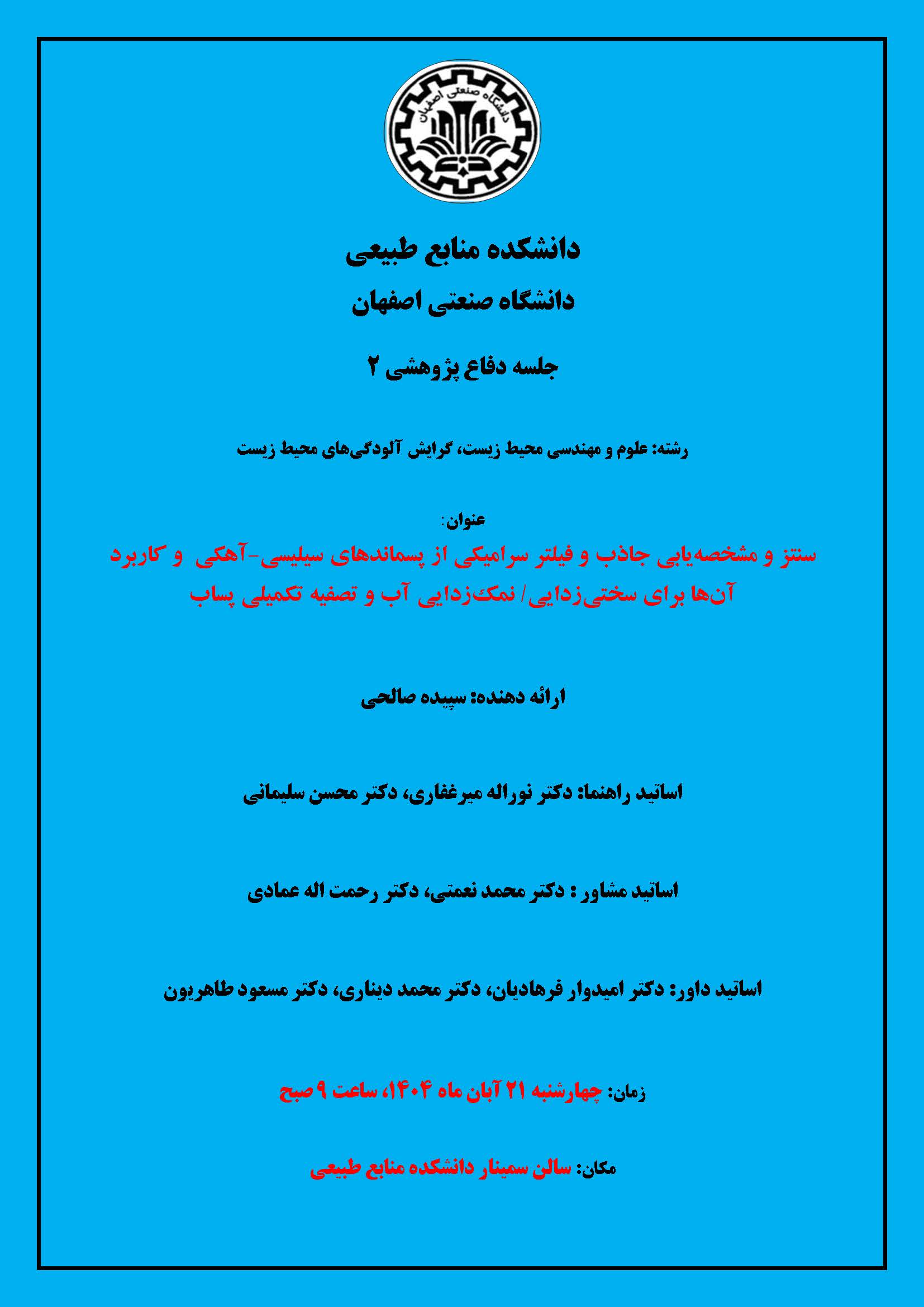 سنتز و مشخصه یابی جاذب و فیلتر سرامیکی از پسماندهای سیلیسی-آهکی و کاربرد آنها برای سختی زدایی/ نمکزدایی آب و تصفیه تکمیلی پساب