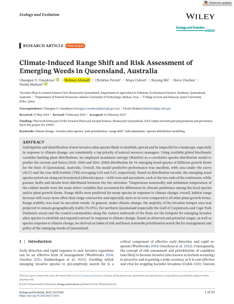 Climate- Induced Range Shift and Risk Assessment of Emerging Weeds in Queensland, Australia